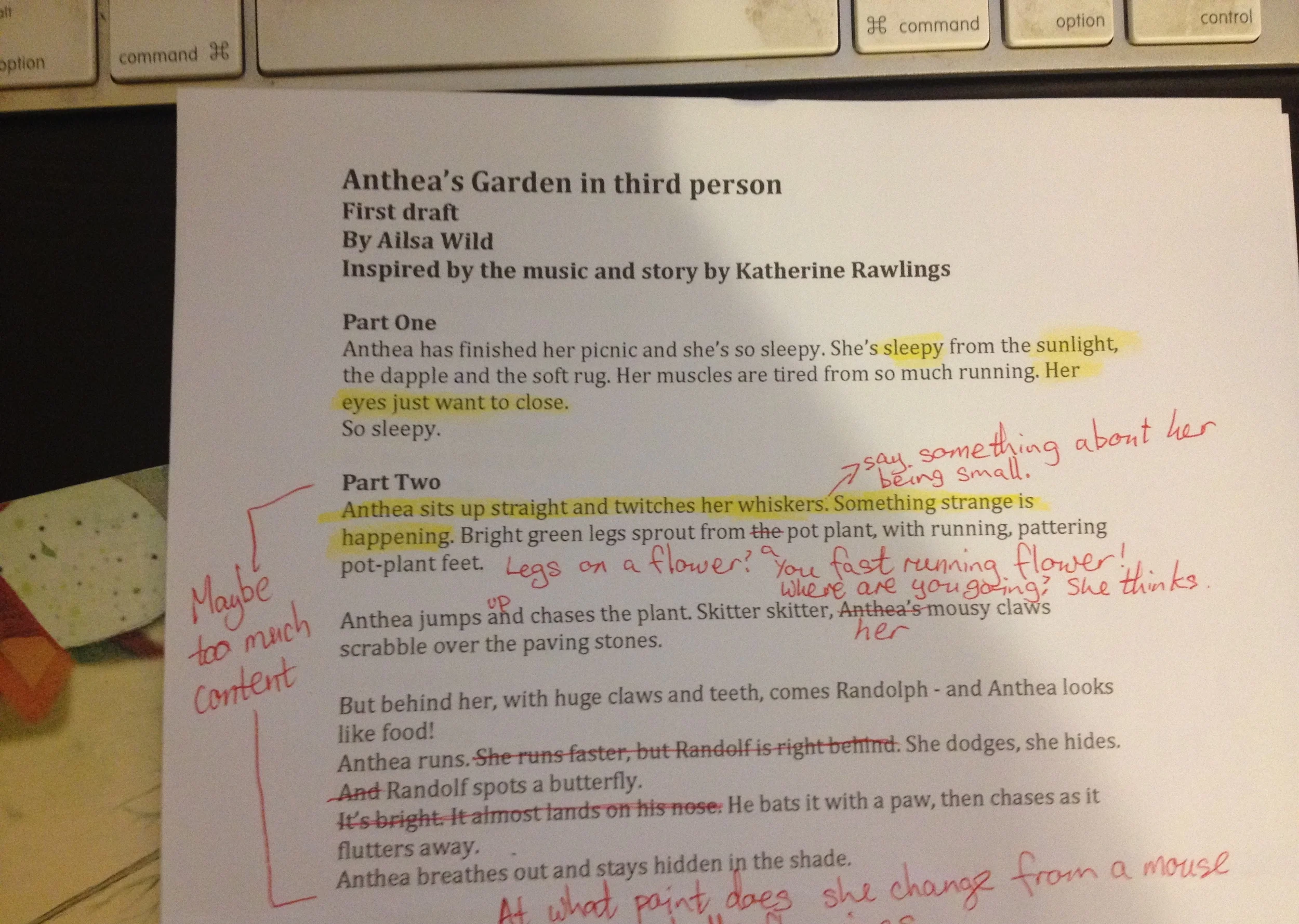 Feeling very honoured to be working with Ailsa Wild on my baby project "Anthea's Garden" - children's picture book. Ailsa just sent me through a rough first draft, and I'm loving the content. Here is a teaser of what she sent through, with my manic excited editing ideas and scribble on top. Your words are beautiful Ailsa, so excited to be working with you. We will be crowd funding for this book in August 2015, and it will be coming out October next year. Check out http://www.pozible.com/project/187995 to see more about Ailsa and her most recent book.
