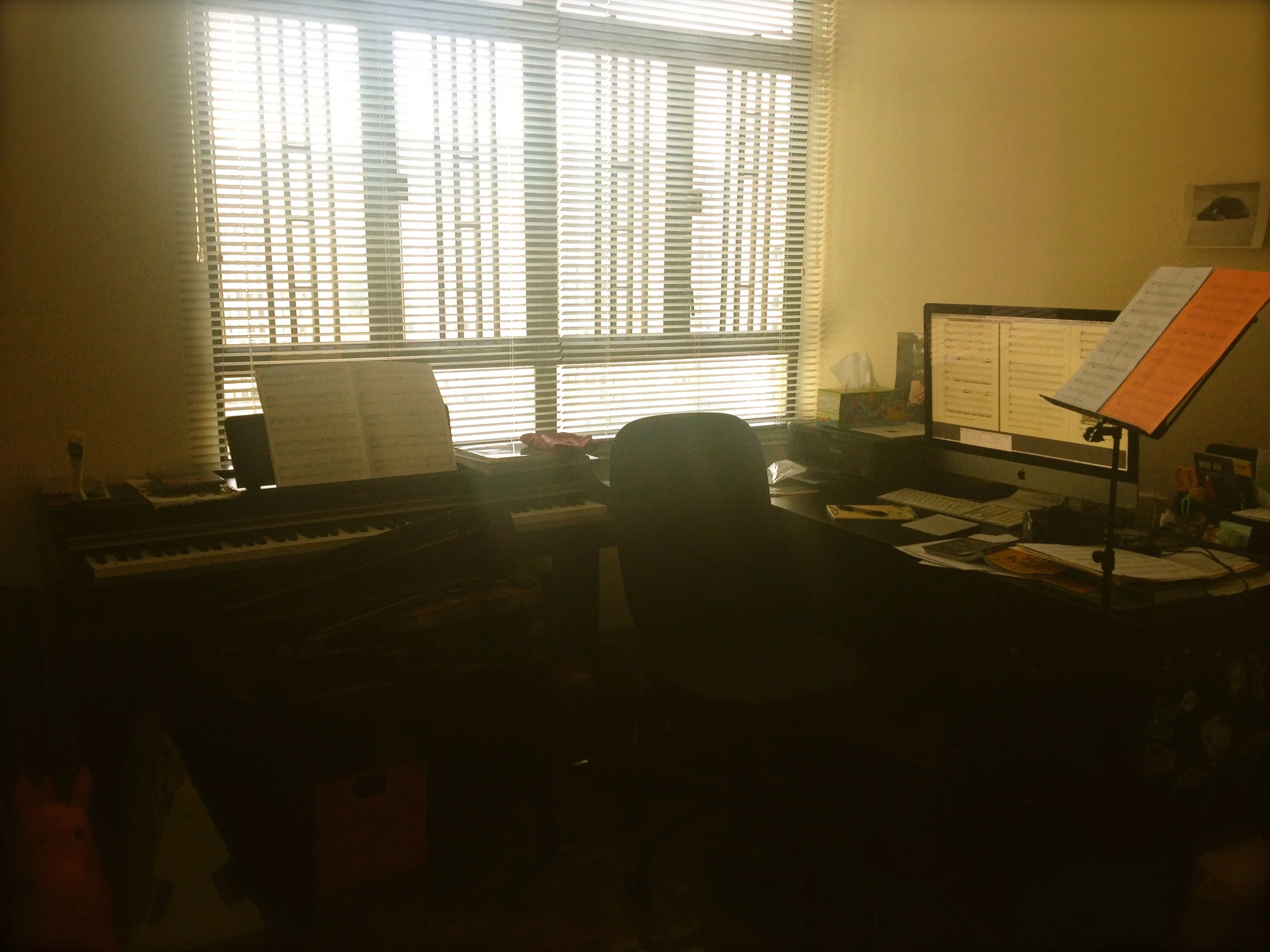 Sometimes I play the piano to come up with an aspect of music that I want to develop. Often it's a good idea to step away from the piano however, to get fresh ideas and to avoid the tendency fingers have of favouring particular uninspiring patterns or clichés. When I improvise on the violin, the patterns my fingers produce (being less chordal and more thematic) often have greater success in producing a fragment of music that inspires me to write more. When this happens, it's like a missing piece of jigsaw is found and something falls into place. I know it when I hear it, this is what I want. It's often hard to find this "spark of inspiration" but when it happens, the compositional process changes. I am no longer blocked or struggling with the fear and weight of the unknown. A new energy takes over and I now feel a sense of urgency to get the music on paper before it disappears.