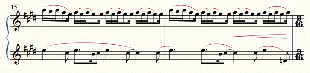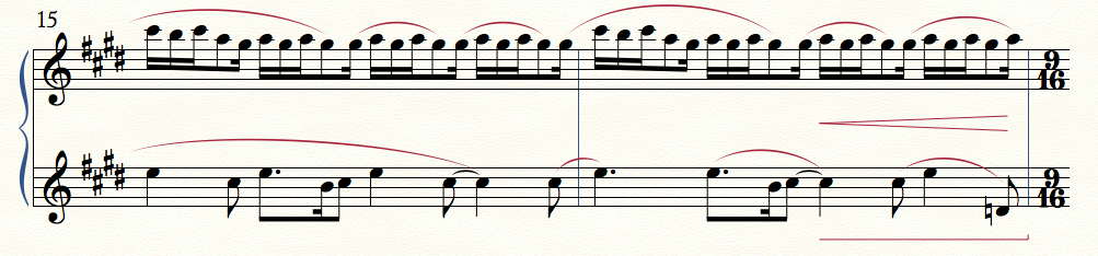 Figure 17.3: example of original slurring used for water ripples motive